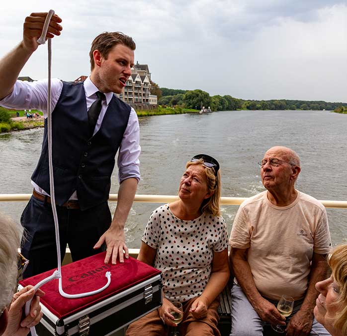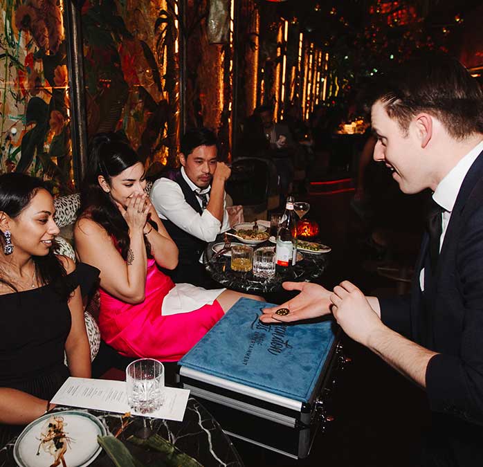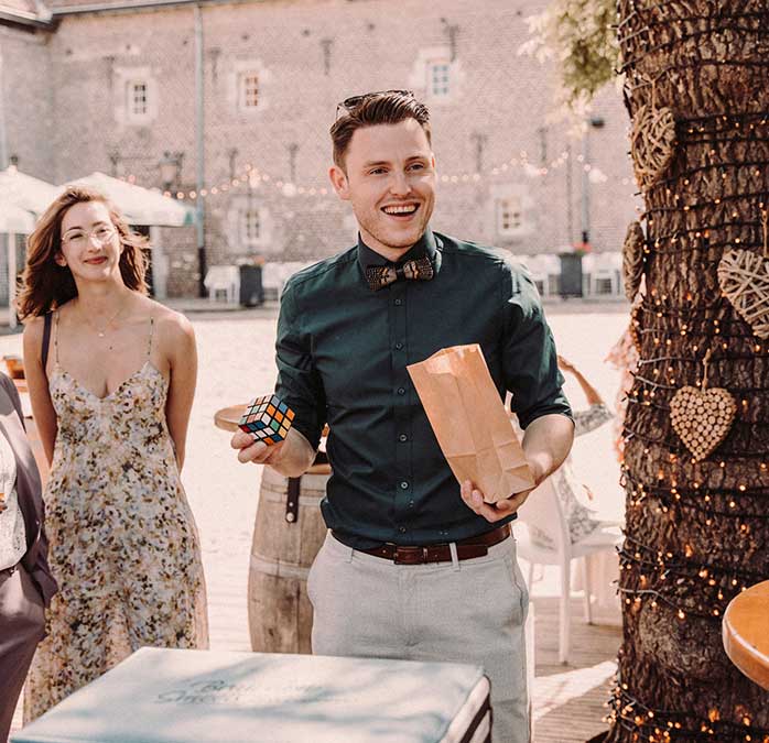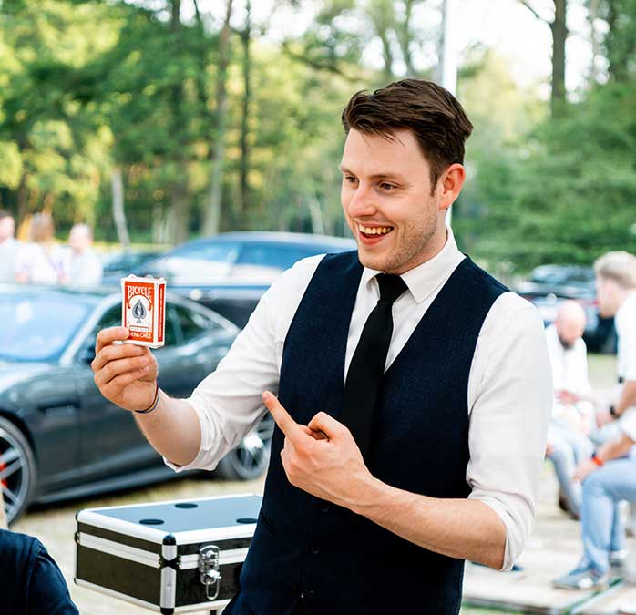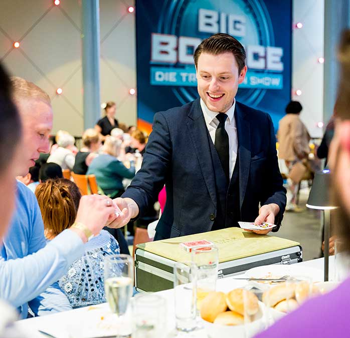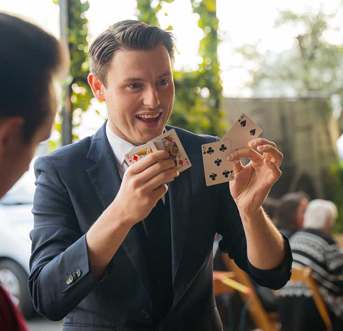 Table magic is a form of entertainment that adds value to any event. Your guests experience the magic right under their noses, literally. You cannot be closer than this! And yet, you can still not discover how these small miracles happen. Using daily objects from spectators or just a deck of cards, Brandon entertains your guests humorously and interactively. This gives a magical touch to your event, connects people, and works perfectly like an icebreaker or evening-long fill-in. There are endless possibilities; it is just a matter of What, Where, When?